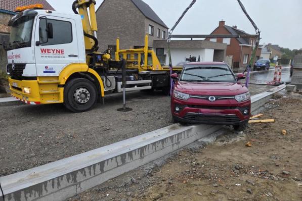 Houthulst / Verkeersongeval Houthulst / Verkeersongeval Vrouw rijdt zich met auto vast op borduur, dag nadat straat opnieuw opengaat 19 juli 2025
