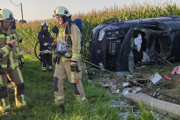 Houthulst / Verkeersongeval Houthulst / Verkeersongeval Jonge vrouw (19) als bij wonder slechts lichtgewond na zware klap tegen paal in Houthulst: “Via open dak zelf uit wagen geraakt” 11 augustus 2025
