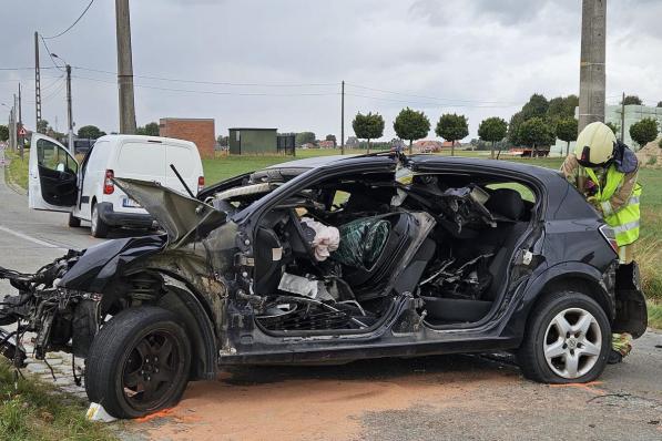 Ieper / Verkeersongeval Ieper / Verkeersongeval Dronken bestuurder crasht tegen boom en tegenligger, twee gewonden naar ziekenhuis 2 september 2025