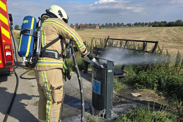 Koksijde / Brand Koksijde / Brand Brandweer kan brandende vuilnisbak vlakbij vliegveld snel blussen 17 juli 2025