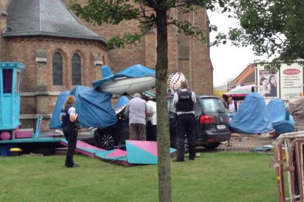 Kortemark / Ongevallen Kortemark / Ongevallen Chauffeur schuift van rotonde en belandt in kermiskraam 26 november 2020