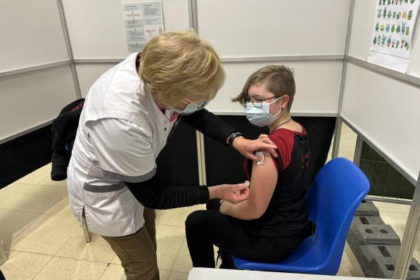 Ingelmunster / Gezondheid Ingelmunster / Gezondheid Hanne (18) krijgt allerlaatste prik in vaccinatiecentrum ISO in Izegem 21 december 2022