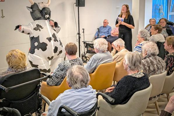 Rekkem / Samenleving Rekkem / Samenleving Een dansend kopje koffie en een zingende koe tijdens The Masked Singer in wzc Zilvervogel 26 november 2025