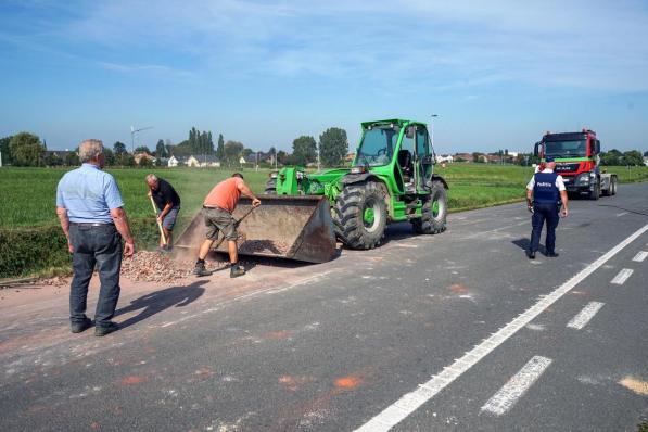 Lauwe / Verkeersongeval Lauwe / Verkeersongeval Vrachtwagen verliest steenpuin en beschadigt enkele wagens 22 september 2021