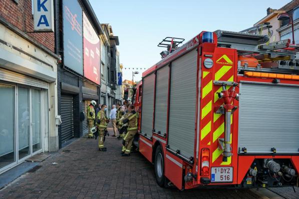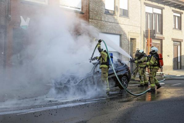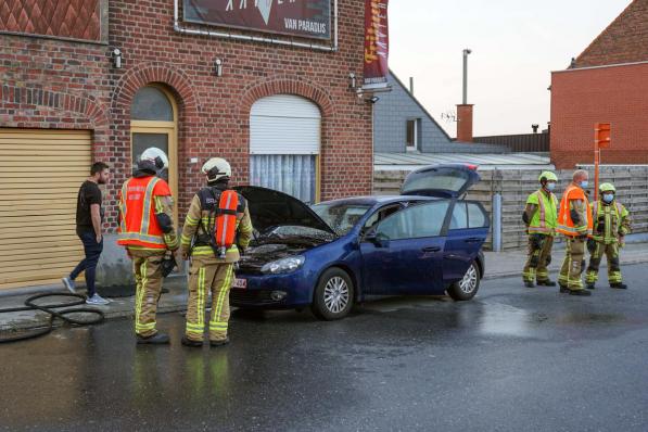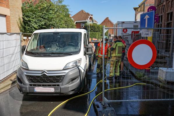 Menen / Brand Menen / Brand Arbeiders kunnen brandende bestelwagen op werf in Menen zelf blussen met tuinslang 25 augustus 2021
