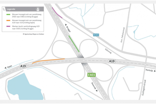 Gullegem / Wegenwerken Gullegem / Wegenwerken Aanleg extra invoegstroken aan complex Moorsele starten week later 6 mei 2022