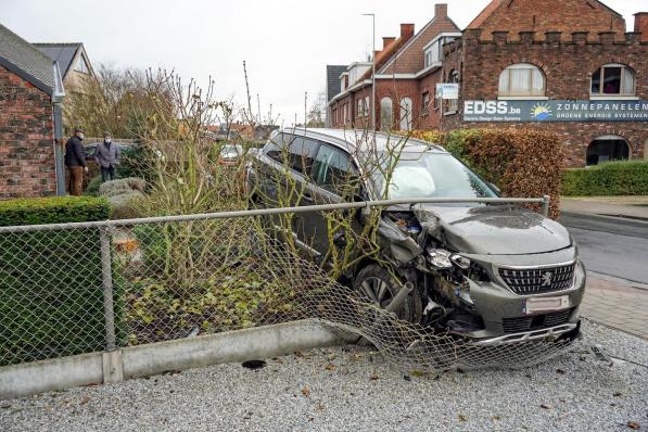 Moorsele / Verkeersongeval Moorsele / Verkeersongeval Auto knalt in Moorsele tegen tuinmuur en belandt in voortuin 30 november 2021