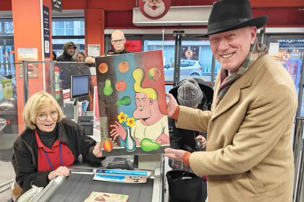 Oostende / Samenleving Oostende / Samenleving Kassierster Monique betaalt broodjes voor Herr Seele…. en krijgt Cowboy Henk-schilderij: “Ik wilde dit warm gebaar belonen” 2 december 2025