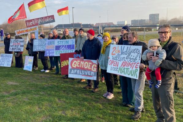 Oostende / Bouw Oostende / Bouw Actievoerders protesteren op Oosteroever in Oostende tegen bouw van woontoren: “Voelen ons bedrogen door belofte van open zicht” Op Oosteroever protesteerden zo’n dertig actievoerders tegen de bouw van een woontoren van vijftien verdiepingen. De stad verleende immers een vergunning daarvoor. De protestactie kwam er omdat de toren gebouwd zal worden in gebied dat tot voor kort beschermd werd als cultuurhistorisch landschap. gisteren om 16:06