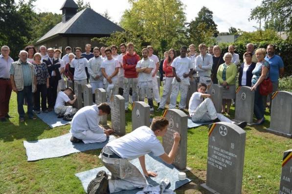 Brugge / Onderwijs Brugge / Onderwijs Leerlingen VTI Brugge restaureren grafzerken van oud-strijders in Oostkamp 26 november 2020