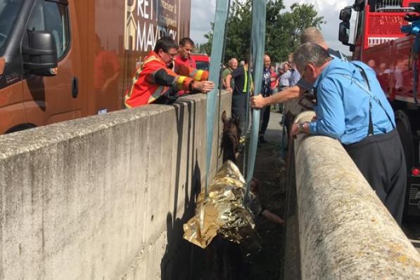 Meulebeke / Ongevallen Meulebeke / Ongevallen IN BEELD Brandweer redt paard uit de Mandel 26 november 2020