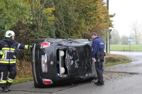 Oostrozebeke / Ongevallen Oostrozebeke / Ongevallen Jonge mama en dochtertje gewond nadat wagen op zijkant belandt 26 november 2020