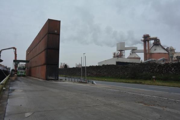 Oostrozebeke / Verkeer en Mobiliteit Oostrozebeke / Verkeer en Mobiliteit Loskade met containermuur in Oostrozebeke wordt afgezet met rood-witte blokken 26 november 2020
