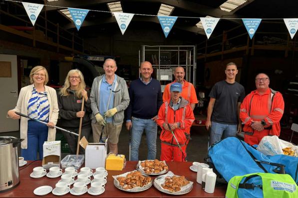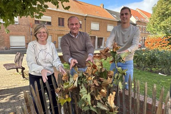 Oudenburg / Natuur Oudenburg / Natuur Bladkorven helpen stoepen en straten netjes houden in Oudenburg 21 oktober 2025