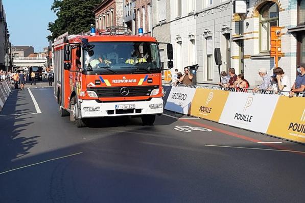 Roeselare / Brand Roeselare / Brand Opschudding als brandweer over parcours Natourcriterium komt gereden 21 juli 2021