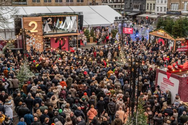 Roeselare / Evenement Roeselare / Evenement Meteen overrompeling tijdens eerste shoppingweekend in Roeselare, Grote Markt even afgesloten tijdens optreden van Niels Destadsbader 14 december 2025