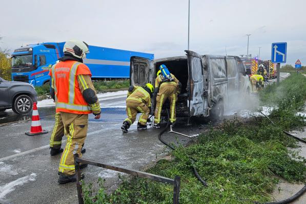 Sint-Eloois-Vijve / Brand Sint-Eloois-Vijve / Brand Bestelwagen brandt volledig uit op expresweg, vlakbij brandweerkazerne 29 oktober 2025