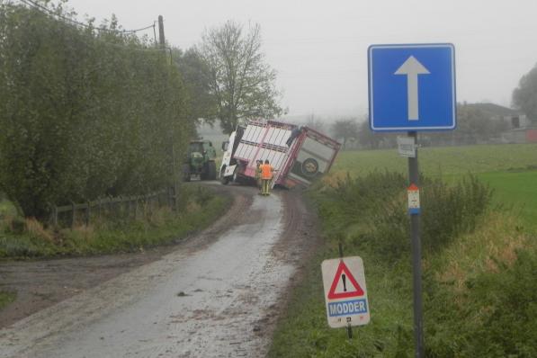 Staden / Verkeersongeval Staden / Verkeersongeval Vrachtwagen in de gracht na modder op de weg 3 december 2021