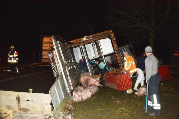 Staden / Ongevallen Staden / Ongevallen Vijftigtal varkens komt om bij ongeval met vrachtwagen in Staden 26 november 2020