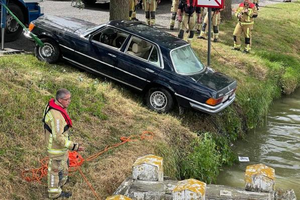 Alveringem / Verkeersongeval Alveringem / Verkeersongeval Oldtimer Mercedes van 51 jaar oud bolt van helling in IJzer in Alveringem 25 mei 2025