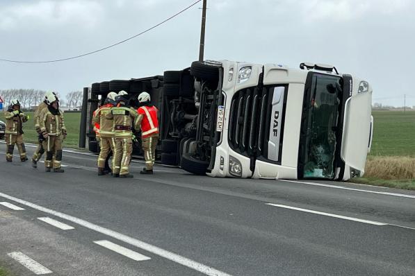 Veurne / Het weer Veurne / Het weer Tientonner van weg geblazen op N8 in Veurne, chauffeur gewond 18 februari 2022
