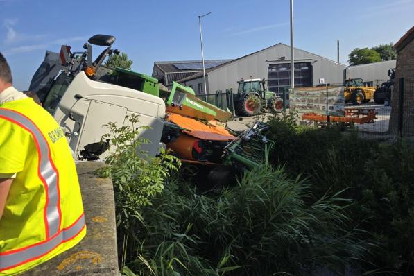 Update Poperinge / Verkeersongeval Update Poperinge / Verkeersongeval Sproeimachine kantelt in gracht in Veurne, civiele bescherming opgeroepen voor milieuvervuiling 9 juli 2025