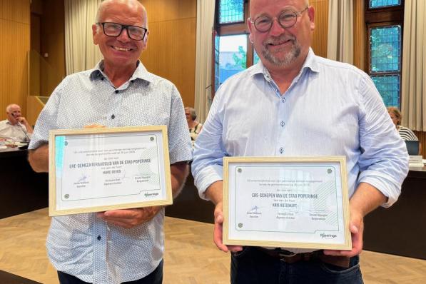 Krombeke / Lokale politiek Krombeke / Lokale politiek Eretitel voor oud-schepen Kris Notebaert en voormalig gemeenteraadslid Marc Devos 30 juni 2025