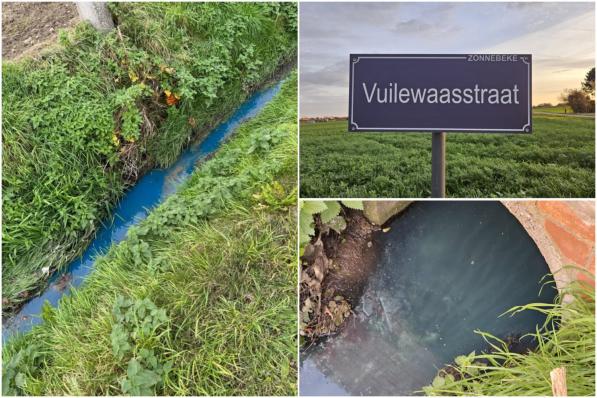 Beselare / Milieu Beselare / Milieu Hier kleuren beken en grachten plots blauw: “Bij iemand is een pot verf omgevallen” 6 november 2025