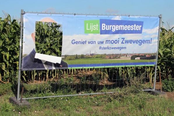 Zwevegem / Politiek Zwevegem / Politiek Vandalen snijden hoofd van burgemeester uit banner voor gemeenteraadsverkiezingen 26 november 2020