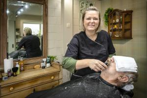 Dadizele / Mode Dadizele / Mode “De omgebouwde garage ademt karakter dankzij enkele oude en retro meubelen”: zorgkundige in de thuiszorg Nele (42) start in bijberoep met barbiershop Barberette 25 november 2025