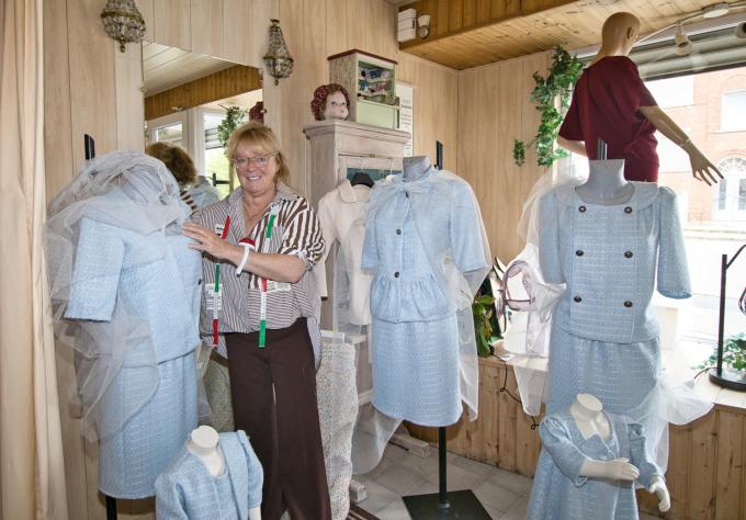 Nancy heeft alvast de handen vol. Dat getuigt de drukte in haar atelier en wat er in haar winkel, recht tegenover parochiekerk Sint-Jan-de-Doper, allemaal in de rekken hangt. “Ik hoop dat ik het nog lang mag doen. Die stress is er altijd. Bijvoorbeeld om een trouwkleed af te werken. De tijden zijn ook veranderd, want veel mensen kopen hun kledij online. Veel oma’s kunnen nog zelf naaien of retouches uitvoeren, maar de volgende generatie niet meer. Jongeren hechten tegenwoordig ook minder belang aan de pasvorm van kleding. Het beroep is dan ook met uitsterven bedreigd of alleszins het aantal erkende kleermakers”, zegt Nancy.