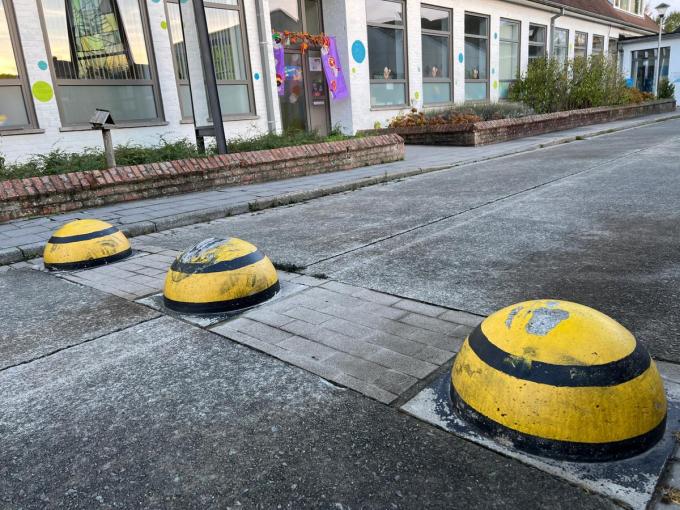 Een onbekende bestuurder reed vermoedelijk tussen 7.30 uur en 7.45 uur over die grote bollen heen. Ze vertonen schade aan de bovenzijde. De bestuurder pleegde daarna vluchtmisdrijf. Ook de wagen liep vermoedelijk flinke schade op, want op de weg lagen grote plassen olie en enkele brokstukken. De brandweer van Koekelare kwam langs om alles op te ruimen. De politie is een onderzoek gestart naar het ongeval. (JH)