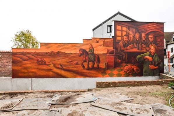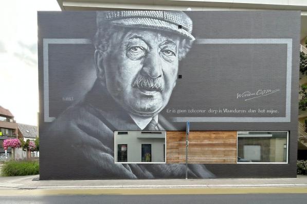 Jabbeke / Kunst Jabbeke / Kunst Indrukwekkende muurschildering in dorpskern: “Ode aan Marie-Jeanne en onze ereburgers” 2 december 2025