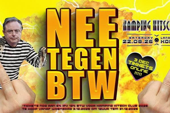 Kortrijk / Evenement Kortrijk / Evenement Kamping Kitsch Club in Kortrijk verkoopt al helft van de tickets om btw-verhoging te omzeilen: “De echte fans mogen geen slachtoffer worden van de politiek” Een maatregel, een beslissing en een totale waanzin als gevolg. Kamping Kitsch Club in Kortrijk zorgde, op het einde van 2025, voor een unicum. Het festival zorgde er op enkele uren tijd voor dat de helft van de tickets voor de editie van 2026 de deur uit vlogen. "We gaan misschien best nog wat enkele vaten extra bestellen." gisteren om 17:12