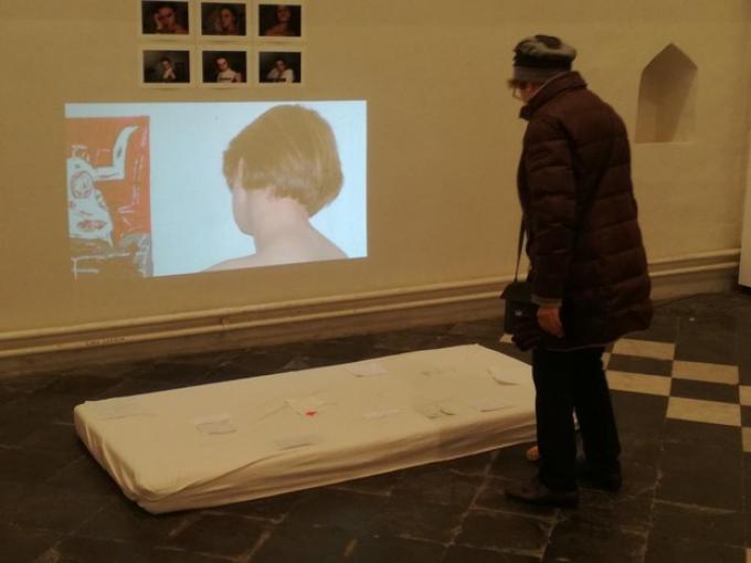 Die blik veroorzaakt het meeste pijn bij Cato Catteeuw. Deze uit Oostende afkomstige tweedejaars studente Film aan KASK in Gent, maakte de video ‘I have seen myself dancing in my room. I am too far. Too detached’. Deze video maakt deel uit van een installatie waar ook een reeks polaroidfoto’s met tekstonderschriften van haar alter ego en een bedmatras met notities en een brok brood bij horen. Die matras symboliseert haar lijden.