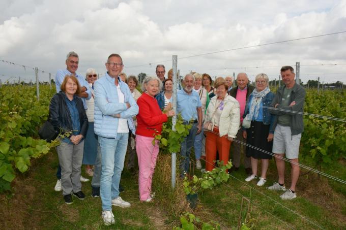 Het was een groot succes, want de locatie werd tot het allerlaatste moment geheimgehouden voor de 22 deelnemers. Gastheer Arnold Wille en zijn echtgenote Sabine verzorgden een boeiende rondleiding door de wijngaard en introduceerden de deelnemers in het productieproces van de wijnen. Linda Denys las voor uit Koning van Katoren van Jan Terlouw, en Luc Bouckhuyt plaatste Dom Pérignon in een verhelderend daglicht. Na een smaakvolle degustatie was iedereen het eens: ‘Samen Lezen heeft steeds verrassende elementen in petto’. Het volgende Samen Lezen-moment is op 8 september. (LB/foto Luc)