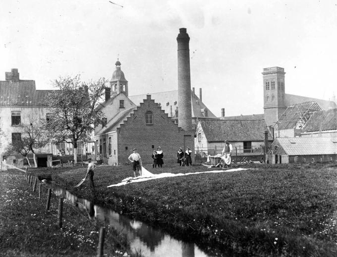 Jarenlang waren er in Brugge blekerijen gevestigd. De eerste moderne blekers waren er al vóór de Franse Revolutie. Toen stuurde men vanuit de Leiestreek grauw, nieuw lijnwaad naar Brugge om te worden gebleekt. Er waren lijnwaadblekers of stukblekers gevestigd in de Sint-Claradreef, ‘s-Gravenstraat, Calvariebergstraat, Peterseliestraat en aan het Begijnhof. De stukken waren elk zo’n 35 à 40 meter lang en werden in de zon te bleken gelegd nadat zij eerst in een loogbad waren geweekt. De hele bewerking duurde circa twaalf dagen. Al de tijd dat het lijnwaad op de grote grasvelden lag, moest het onophoudelijk met water worden besproeid.