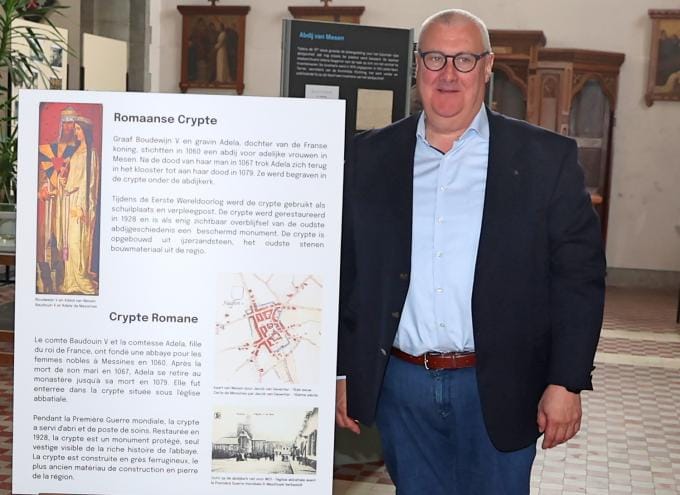 Een unieke oorkonde over de stichting van de Abdij van Mesen keerde bij de start van de zomer terug naar Mesen, een infopaneel onthuld in de middeleeuwse crypte van de kerk van Mesen duidt nu de oorkonde. “De herinneringen aan de Groote Oorlog zijn hier enorm aanwezig. Maar ook de middeleeuwen verdienen de nodige aandacht”, weet burgemeester Sandy Evrard, eveneens bevoegd voor toerisme.