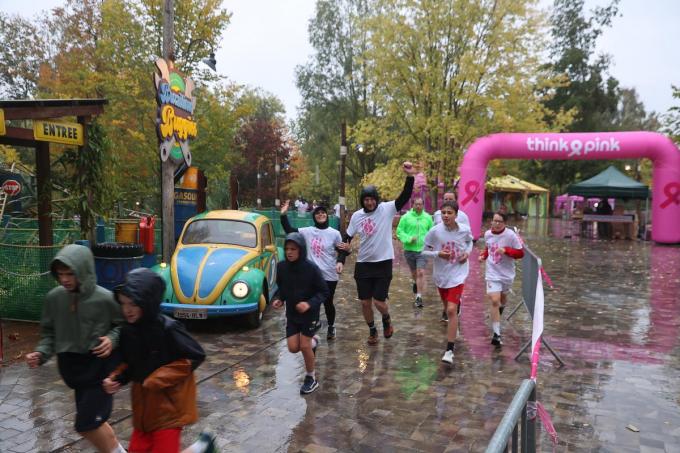 “Op onze eerste editie waren er 500 deelnemers en nu klokken we af op ongeveer 2.500 deelnemers. De deelnemers, die zich niet lieten afschrikken door de regen, konden een rustige wandeling van 2,5 km maken door het park of een trail van 5 km lopen. Je ziet witte en roze T-shirts. De mensen met een roze T-shirt zijn vrouwen en mannen die getroffen zijn door borstkanker. We zien echter veel meer witte T-shirts die de roze T-shirts omringen en dat is goed.”