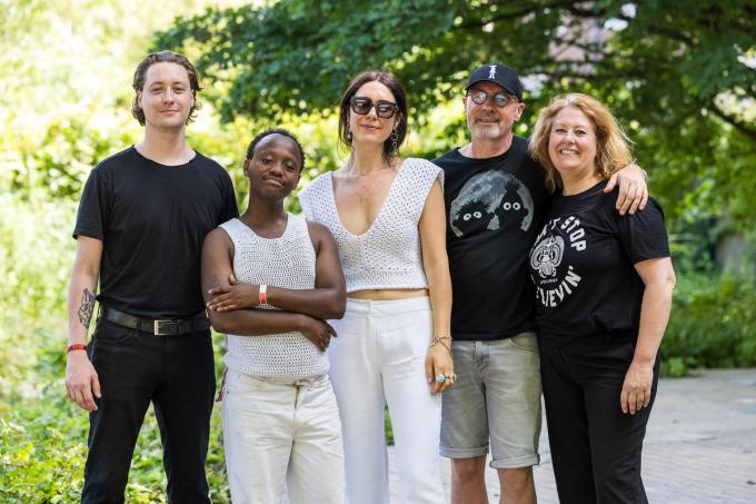 Tijd voor een groepsfoto, met broer Stef, mama Gündi De Smedt en papa Hendrik Lauwers. Ze zijn alle drie gehuld in het zwart en hebben rock T-shirts aan van hun winkel The Backstage uit de Wollestraat. “Gek, ik heb hier al enkele mensen backstage zien rondlopen met kledij uit onze shop”, glimlacht papa Hendrik Lauwers, een muziekfreak die trots is op zijn dochter.