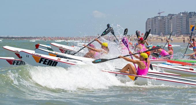 Voorts is er onder andere Surfski met een soort van kajak, simultaan aan de wedstrijd Board Race. “De Ocean Man of de Ocean Man Relay is de koninginnenproef waarin één atleet diverse proeven na elkaar doet: zwemmen, board, surfski en lopen. Ze moeten dat een aantal keren doen om in de finale te geraken. En dat is ook de proef die in 2032 mogelijks olympisch wordt.” Een tweede proef die heel hoog staat aangeschreven is Beach flags waar de atleten op hun buik liggen, 180 graden draaien, recht springen en een sprint doen om dan een stokje te nemen. “Dat stokje wordt telkens in vermindering gebracht tot er een winnaar overblijft. Ze zijn met meer dan 140.” (ACR)