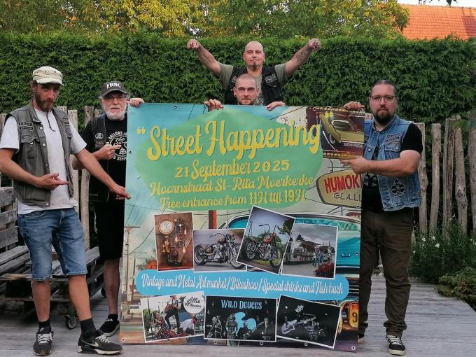 Na een onderbreking van tien jaar organiseert Free Riders MC opnieuw de Street Happening in Den Hoorn. “Hiermee willen we ons 40-jarig bestaan delen met het grote publiek”, zegt secretaris Geert Himpens. “De Hoornstraat wordt omgetoverd tot een feeststraat met livemuziek en leuke stands.”