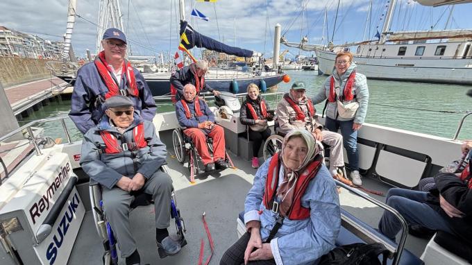 Ook de 95-jarige Marcel Lycke ging mee. “Op dit vaartuig kunnen onze mensen ook zelf nog eens sturen. We zien hen genieten”, luidt het bij de begeleiders.