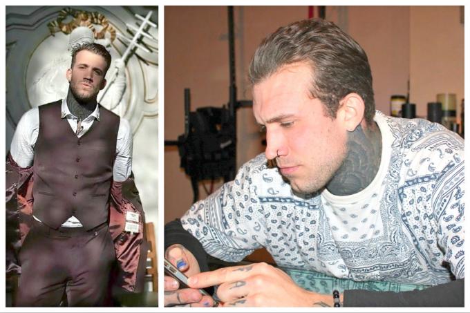 “Op mijn 25ste liet ik mijn eerste tatoeage zetten: een doodskop op mijn rechterknie. Was dat afzien.. Ondertussen staan ook mijn borst, hals en armen vol. Mijn rug en rechterbeen volgen nog. Ik heb een tijdje als stripper-entertainer gewerkt. Ik ben vrijgezel en het betaalde goed. Ik ging nooit volledig naakt. Maar twee jaar geleden ben ik gestopt. Ik verlang naar een vaste relatie en dan wil je een ‘serieuze’ jongen zijn” (glimlacht).