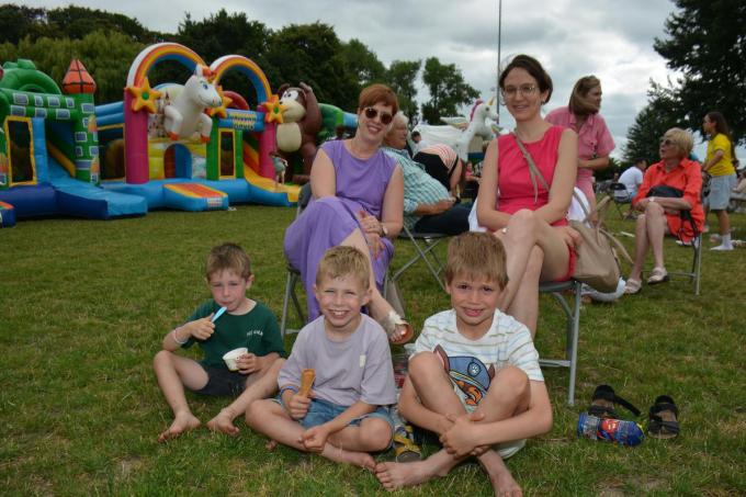Nand, Flor en Milo (v.l.n.r.) genieten van de heerlijke ambiance. “Hier hebben de kinderen een fantastische speelruimte en spelen ze voortdurend in het zicht van de ouders. Ook de parkeerruimte is hier stukken beter dan rond het marktplein”, aldus Julie uit Gullegem, die jaarlijks met haar Meulebeekse vriendin en de kinderen de Berenfeesten bezoeken.