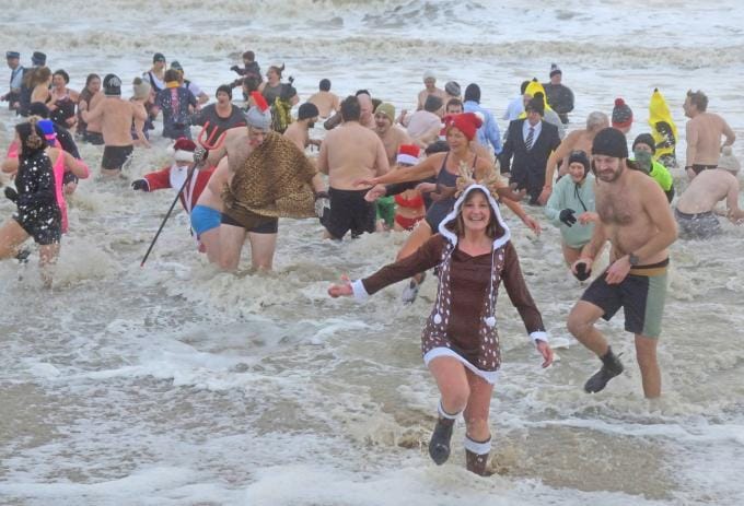 Ook in Bredene vond op zaterdag 3 januari een Nieuwjaarsduik plaats, voor de 14de keer al. De vzw Fris in Zee tekent voor de organisatie, in samenwerking met de Bredense Bruinvissen, kajakclub De Waterratjes en duikschool Duikernikkers. Het aantal deelnemers wordt bewust beperkt tot 300 om het kleinschalig, veilig en gezellig te houden, maar door het erg koude weer was dat dit jaar wellicht iets minder. Door de onstuimige zee mochten de ijsberen maar tot kniehoogte en minder lang in het water gaan en werd er opgewarmt tussen het talrijk opgekomen publiek. Het werd een editie om niet snel te vergeten, maar wel met veel sfeer. (HH/foto Bredene Vroeger en Nu 2.0)