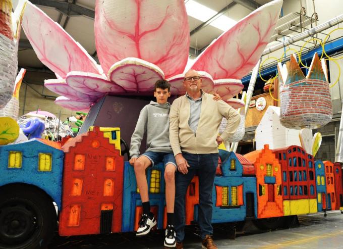 Het bebloemen van de wagens is een secuur werkje, zo blijkt. “De jury kijkt ook naar de afwerking, dus elk detail moet kloppen. Maar al die uren werk die eraan vooraf zijn gegaan, zien de mensen niet”, aldus Bert, die voor het bebloemen ook op zijn 15-jarige kleinzoon Robbe kan rekenen. “Vorig jaar heeft hij samen met een kameraadje uitstekend werk geleverd. Het is ook zo dat ze er inrollen, hé: jong geleerd is oud gedaan. Robbe blijft al van donderdag bij oma en opa logeren, zo kan hij vrijdagmorgen mee de bloemen ophalen. Hij is supergemotiveerd.”