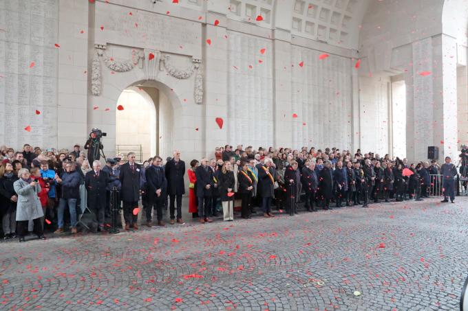 In Ieper is dinsdagochtend 107 jaar Wapenstilstand herdacht. Dat gebeurde onder de Menenpoort. Vlaams minister-president Matthias Diependaele (N-VA) en minister Melissa Depraetere (Vooruit) woonden de ceremonie bij. De plechtigheid vond voor het eerst weer plaats onder de Menenpoort na de grondige renovatie van het monument de afgelopen jaren.
