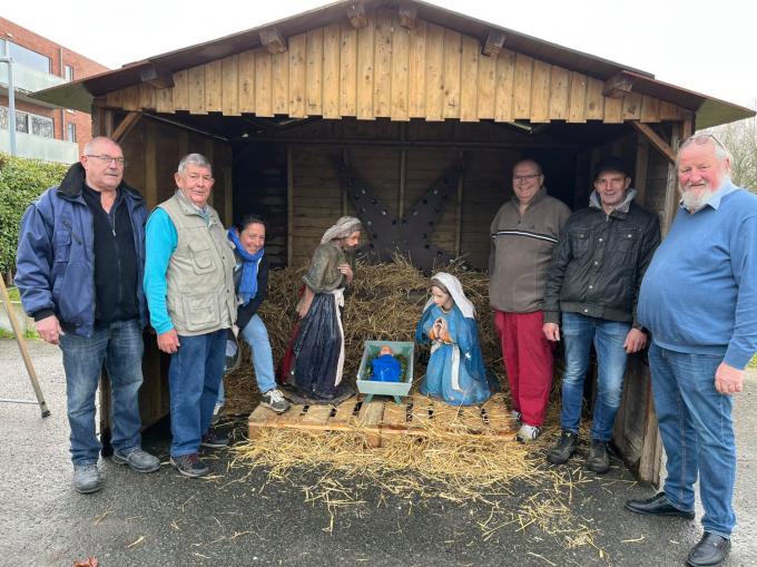 “Beter laat dan ooit”, zeggen de initiatiefnemers zelf, “maar we hebben uiteindelijk toch weer een kerststal in de Molenhoek in Deerlijk.” Daarvoor zorgden (van links naar rechts op de foto, red.) Guido Putman, Romain Vandenberghe, Lies De Witte, Yves Vande Wiele, Koen Vandaele en wijkburgemeester Bernard Vercruysse.