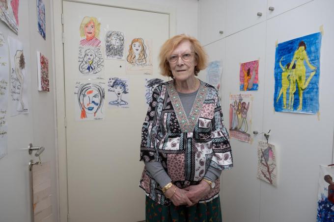 Cecile Vandoorne (78) woont op een appartement in de Melkmarktstraat in Izegem. Toen we haar flat binnenkwamen, leek het wel een permanente tentoonstellingsruimte voor haar eigen werk, mooi meubilair en andere leuke voorwerpen. Voor Cecile, die vroeger als kleuterleidster werkte in de vrije basisschool Sint-Vincentius in Kachtem, is haar thuisadres een soort permanent atelier waar ze nog altijd haar ideeën omzet in een gedicht gecombineerd met een schilderij of omgekeerd.